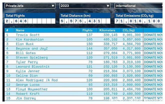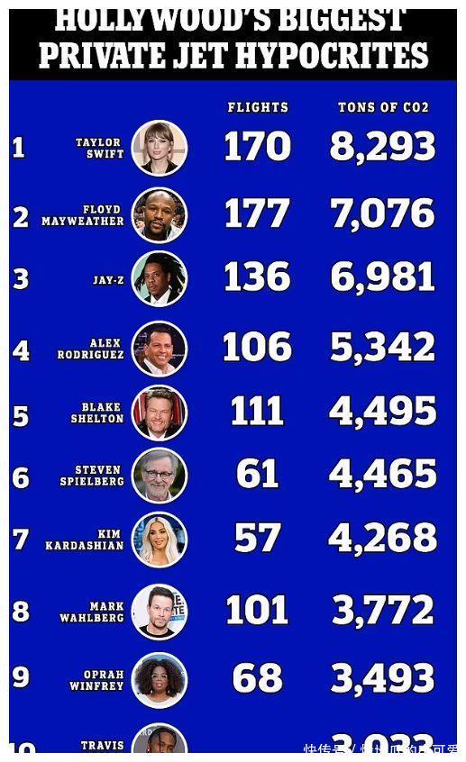 泰勒斯威夫特是该榜单上的第又名,因为私东谈主飞机胁制遭到指控后,泰勒说明减少了私东谈主飞机的使用,不外金卡戴珊涓滴莫得低调。